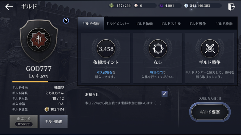 だいたい夜に皆さん活動してます。黒い砂漠やり始めてわからない方も大歓迎!メンバーが教えますよ?ぜひ!