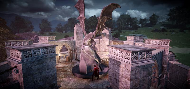 黒い竜石像前にて