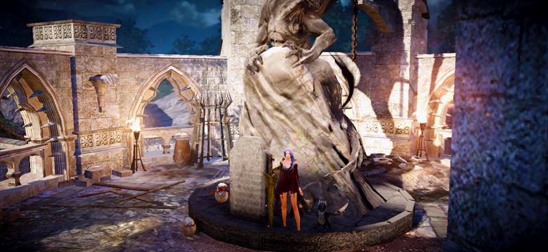 竜石像とミニ竜の見切れ2ショット